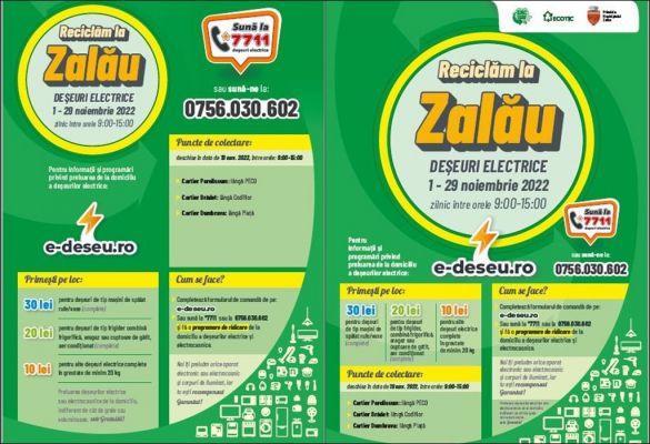Campania de colectare a deșeurilor electrice organizată de Primăria Municipiului Zalău și Sistem Național de Colectare©DEEE, în parteneriat cu Asociația Ecotic, continuă și în această săptămână la Zalău. Preluarea gratuită a deșeurilor electrice si electronice de la domiciliu sau sediu de firmă se poate solicita telefonic la 0756 030 602 sau completând simplu și rapid formularul de comandă online pe site-ul www.e-deseu.ro. Sâmbătă, 7 mai, între […]