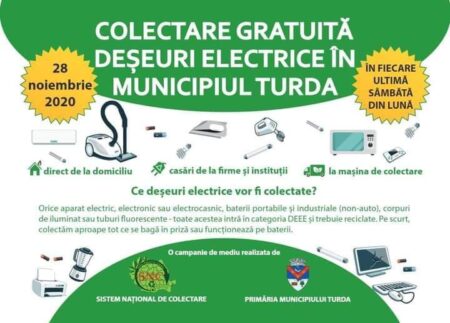 Primăria Municipiului Turda împreună cu Societatea Locală de Colectare – SLC Centru pune la dispoziția cetățenilor un serviciu GRATUIT de colectare de la domiciliu a deșeurilor electrice, electronice și electrocasnice. Pentru ca întreaga acțiune să se desfășoare cât mai eficient, înregistrarea comenzilor se face începând de astăzi, urmând ca mâine să aibă loc colectarea.
