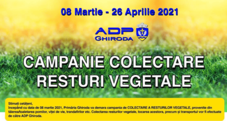Luni, 08 martie, Primăria Ghiroda a demarat campania de colectare a resturilor vegetale, provenite din tăierea/toaletarea pomilor, viței de vie, trandafirilor etc. Campania se va termina pe 26 aprilie, iar ADP Ghiroda se va ocupa de colectarea, transportul şi tocarea resturilor vegetale.